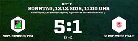 In der zweiten Halbzeit fiel das 3:0 dann so schnell, dass die meisten Zuschauer sich noch gar nicht wieder richtig gesammelt hatten. Im weiteren Spielverlauf dominierten die “Preußen“ weiterhin das Spiel vergaben aber einige Chancen und konnten auch einen Foulelfmeter nicht verwandeln. Erst in Minuten 56 und 57 konnten wir nach zwei starken Kombinationen wieder netzen, aber das 5:0 markierte noch nicht den Endstand. In der letzen Minute -vielleicht war die Abwehr gedanklich schon unter der Dusche- nutzte der Gegner die Nachlässigkeit aus und konnte mit dem Ehrentreffer zum 5:1 den Endstand markieren.