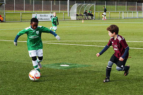 Am heutigen Samstag spielte unsere F 1 bei nasskaltem Wetter mit einer gemischten Team aus F 1 und F 2 gegen den VFR Bockenheim. 6 Jungs waren mit Mireille in Aschaffenburg auf einem Turnier und Boran erkrankte, sodass unseren Trainern Marinko und Chris 9 Spieler zur Verfügung standen.