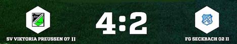 Seckbach verschlief die erste Hälfte und lag durch Neumeister zurück (23.). Zwar trafen Burkhardt (55.) und Becker (83., Handelfmeter) in Hälfte zwei, die „Preußen“ entschieden das Spiel durch Koksa (52.), Tran (75.) und Özen (89. Foulelfmeter) aber für sich.