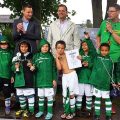 Bad Homburgs Oberbürgermeister Hetjes nahm persönlich mit einem Vertreter des Gastgebers und des Sponsors die Siegerehrung vor. Die Jungs kamen als Gruppe stolz auf die Bühne und holten sich die Pokale ab.