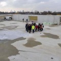 Von der künftigen Turnhalle ist noch nicht viel zu sehen: Auf der Bodenplatte erheben sich die Wände bis in etwa vier Meter Höhe. Die aus Beton-Fertigteilen bestehende Empore, auf die die Umkleiden kommen, ist fertig. “Was nicht zu erkennen ist, sind die aufwendigen Vorarbeiten. Man sieht gar nicht, wie lange wir für all das, was nun unter der Erde liegt, gebraucht haben“, sagt Andreas Schröder, Geschäftsführer der Frankfurter Aufbau AG (FAAG), die die Halle geplant hat. So entstand etwa eine „riesige Kanalisation“ unter dem Gelände.