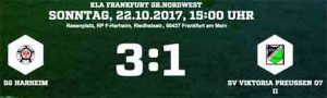 In einer ausgeglichenen Partie, die sich zumeist im Mittelfeld abspielte, setzte sich mit Harheim das etwas torgefährlichere Team durch. Für die SG trafen Toni Parente (60.), Emmanuel Dalle (76.) und Yafet Tsighe (90.), das 1:1 erzielte Antonio Cacciato (70.).