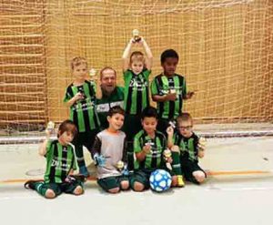 Die Tore verteilten die Jungs auf alle 4 Spiele, 3 Gruppenspiele und dem Finale gegen den SV Stockstadt. Wir wurden somit überlegen Turniersieger und feierten einen tollen Start in die Hallensaison. Unsere Treffer erzielten 5 x Filip, 4 x Amanuel und 1 Mohammed. Bei der Siegerehrung bekam jedes Kind einen kleinen Pokal und unser Team als Sieger einen neuen Spielball.