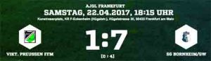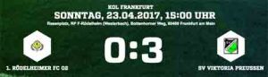 Die Gastgeber drängten zwar nach der Halbzeit auf den Ausgleich, dieser blieb ihnen aber nach Chancen von Vogt und El Abbassi verwehrt. Zwar spielte Rödelheim engagierter und offensiver, aber die Gäste kamen durch Konter zum Erfolg. Daniel Rother köpfte eine Flanke zum 2:0 ein, Kofi Darko Wilson besorgte den 3:0-Endstand für die Preußen, die ersatzgeschwächt ohne die etatmäßige Innenverteidigung antraten. Zudem fielen Renato Levy und Anass Barkok aus. “Das war ein Endspiel auf Augenhöhe mit einer guten Leistung. Die 34 Punkte sollten für den Klassenerhalt reichen“, hofft Thomas Mahlau, der Fußball-Abteilungsleiter der Preußen auf bessere Zeiten beim einstigen Gruppenligisten.