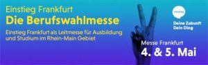 Ein wichtiger Termin für Schüler, Eltern und Lehrkräfte ist die Berufsorientierungsmesse Einstieg Frankfurt. Rund 150 Aussteller informieren am 4. und 5. Mai 2018 über Ausbildung, Studium und Gap Year und geben Orientierung und Klarheit für die berufliche Zukunft.
