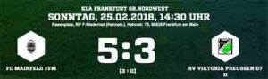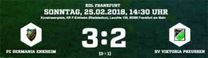 Dabei operierte Enkheim überwiegend mit weiten Einwürfen des eingewechselten Marcel Dücker. Damit kam die umformierte Abwehr der Preußen überhaupt nicht zurecht und musste zunächst den Ausgleich durch Routinier De Freitas Helder Ferreira hinnehmen. Auf Zuspiel des Portugiesen, der sich von seinem Coach wegen seines Laufpensums ein Sonderlob verdiente, brachte Kevin Naumann die Germania mit 2:1 nach vorne. Einwurfspezialist Dücker legte dann das 3:1 nach. Für die Gäste reichte es nur noch zum 3:2-Anschlusstreffer wiederum durch Amore.
