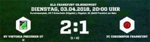 Per Freistoß aus 25 Metern brachte Özen die Gastgeber nach vorne (11.), Murat Özer glich aus (49.). Nach einer Ecke von Jose Ferreira-Alves köpfte Tom Angenendt zum Endstand ein (63.).