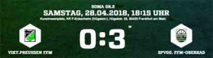 Nach einer torlosen ersten Hälfte waren die Gäste von der Hügelstraße nach einem langen Ball auf Mohamed Akil mit 1:0 in Führung gegangen, Fechenheim hielt dagegen und egalisierte mit einem Traumtor von Carlo Winkelmann in den Winkel. Beim 2:1 trat Preußens Philipp Guhlke über den Ball. Davon profitierte Kamil Yikilmaz, der den Ball zu Ouassim Ouass weiter leitete. Im Tor der Preußen parierte U19-Torwart Cedric Wohlgemuth, aber den Abpraller versenkte Ouass zum Siegtreffer.