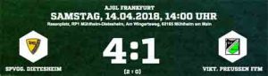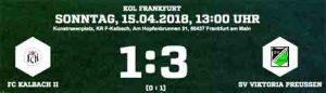 Wir hatten noch einige Möglichkeiten, aber die Preußen haben verdient gewonnen.““Torjäger Stefano Amore hatte die Gäste von der Hügelstraße früh mit 1:0 in Führung gebracht und erhöhte nach dem Seitenwechsel per Kopfball auf Flanke von Daniel Rother auf 2:0. Der Goalgetter leistete dann die Vorarbeit zum 3:0 durch Anass Barkok. Bei den Gastgebern konnte Talent Soufiane Moussaoui nach einem Eckball nur noch auf 1:3 verkürzen. Simon Kutt von Kalbach II traf noch den Pfosten, Stefano Amore von den Gästen die Latte. “Kalbach hatte nach unserer frühen Führung mehr Spielanteile.