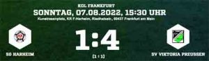 Mit einem schnellen Doppelpack (47./50.) zum 3:1 schockte Willeführ das Heimteam. Nsemi schraubte das Ergebnis in der 79. Minute mit dem 4:1 für den SV Viktoria Preußen in die Höhe. Am Schluss siegte der SV Viktoria Preußen verdient gegen die SG Harheim.