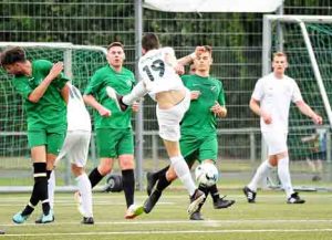 Außerdem gab es auf dem Sportplatz ein Treffen älterer Spielergenerationen mit eigenem Verpflegungsstand. Somit erklärt sich die ungewöhnlich hohe Besucherzahl für das Kreisoberligaspiel. Es war auf jeden Fall mehr los als sonst auf der Bezirkssportanlage Nord, auch wenn sich die Besucher hinter dem Tor eher geselligen Aktivitäten als der Spielbeobachtung widmeten.