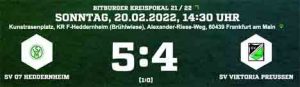 Die Gäste kamen in der Anfangsphase schon zu einigen Torabschlüssen durch Daniel Wolf, Johannes Wiedemann und Tim Gießler, während der SVH mit Stürmer Oliver Solarz gefährlich wurde. Die Heddernheimer Führung resultierte dann aus einem Foulspiel des neuen Preußen-Keepers Oliver Copik, der Solarz nur durch ein Foulspiel bremsen konnte. Kapitän Philipp Siegel nahm sich wie gewohnt der Sache an und verwandelte zum 1:0 (16.).